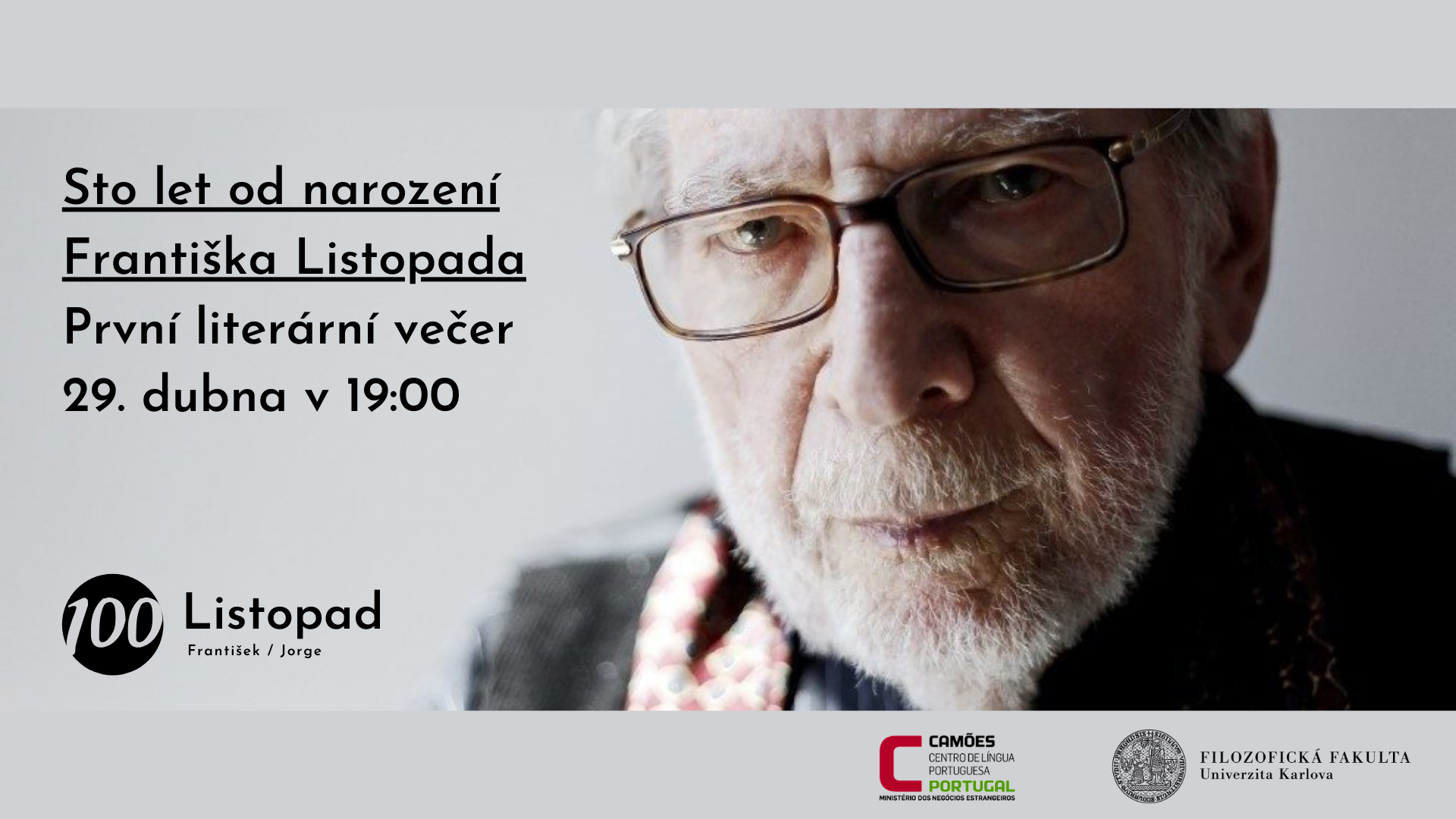 Sto let od narození Františka ListopadaZveme vás na úvodní večer k projektu 100 František/Jorge Listopad, který se bude vysílat živě ve čtvrtek 29. dubna od 19 hodin na sociálních sítích.Spisovatel František Listopad (1921–2017), v Portugalsku známý jako Jorge Listopad, o sobě v jednom z rozhovorů řekl, že je „kolikerý“. V rámci pořadu věnovaného tomuto umělci, který se stal významnou postavou české i portugalské kulturní scény, se vám pokusíme nastínit právě mnohost jeho osobnosti a literárního díla. I přestože František Listopad rozostřoval kulturní hranice, dokázal zachovat skutečnosti, které jsou kulturám jeho milovaných jazykových oblastí vlastní, a vytvořil tak jedinečné pouto mezi dvěma evropskými zeměmi.Přednáškou vás provede portugalistka Karolina Válová, s přispěním doktorandky Petry Šantorové a úryvky z Listopadovy tvorby přečtou studentky Sandra Jankotová a Kateřina Fučíková z pražské filozofické fakulty a Věra Vidoňová a Laura Obžerová z brněnské filozofické fakulty.Literární večer proběhne v českém jazyce.Pořádají: Oddělení portugalistiky na FF UK v Praze, Oddělení portugalského jazyka a literatury na FF MUNI v Brně a Portugalské centrum Camões, I.P. v Praze〰O Centenário de Nascimento de Jorge ListopadEstão todos convidados para uma sessão de inauguração do projeto 100 František / Jorge Listopad, que será transmitida em direto nas redes sociais, na quinta-feira 29 de abril, a partir das 19 horas.O escritor Jorge Listopad, conhecido na República Checa como František Listopad, disse numa das entrevistas jornalísticas que se considerava “pluraligésimo“. No âmbito da sessão dedicada a este artista, uma importante figura da cena cultural checa e portuguesa, tentaremos apresentar a pluralidade da sua personagem e obra literária. O artista ultrapassava as fronteiras das culturas e das línguas, apesar de sempre saber distinguir as respetivas realidades, criando assim laços insólitos na Europa.A sessão literária, organizada por ocasião do centenário de nascimento de Jorge Listopad, será apresentada por Karolina Válová, especialista em literatura portuguesa, com o apoio da doutoranda Petra Šantorová, a leitura dos excertos da obra do escritor será feita pelas estudantes Sandra Jankotová e Kateřina Fučíková, de Praga, e Věra Vidoňová e Laura Obžerová, de Brno.O evento será promovido em língua checa.Organização: O Departamento de Estudos Luso-Brasileiros da Faculdade de Letras de Universidade Carolina de Praga, o Departamento de Língua e Literatura Portuguesas da Faculdade de Letras de Universidade Masaryk em Brno e o Centro de Língua Portuguesa Camões, I.P. em Praga.událost | evento