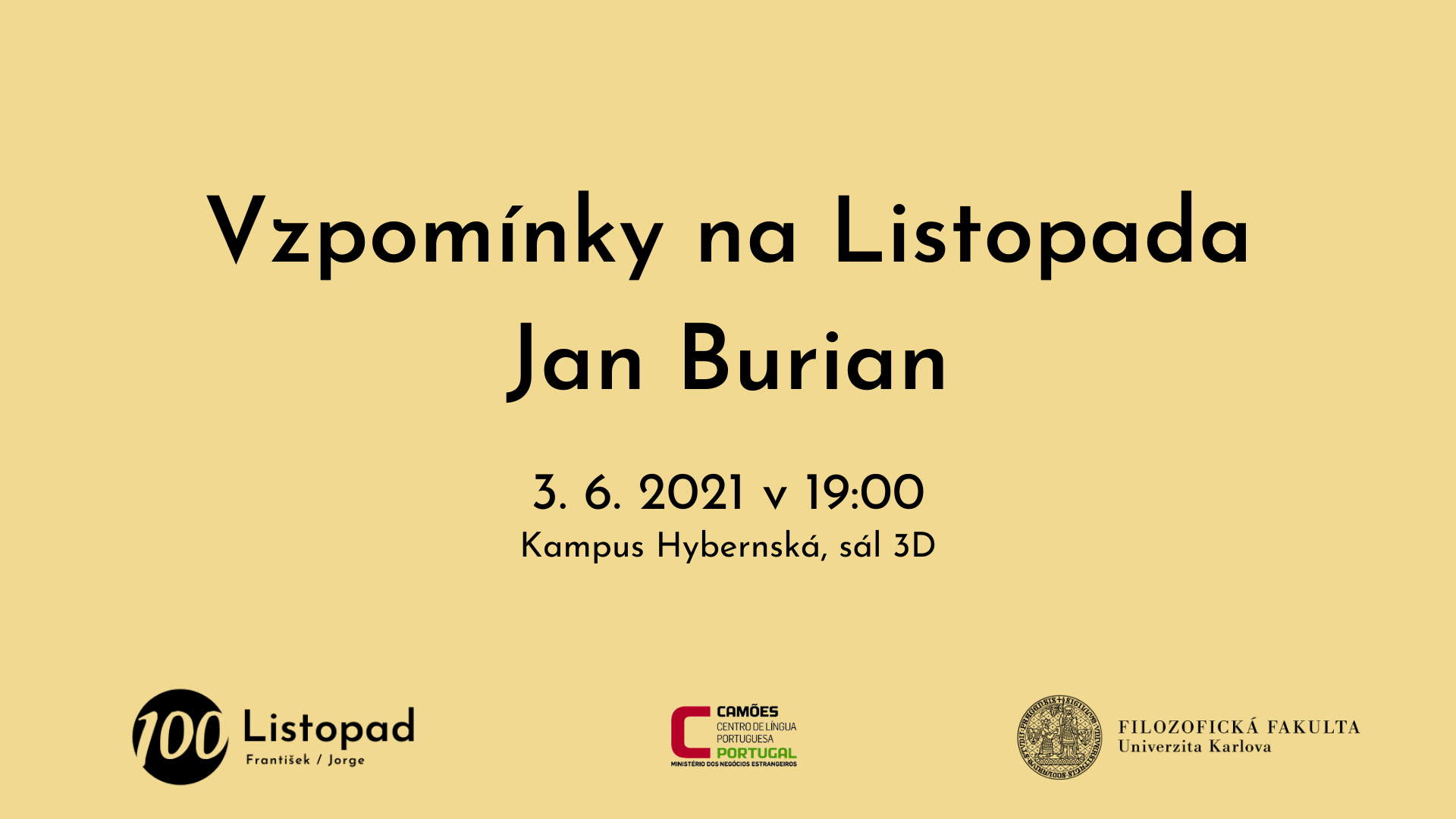 Jan Burian e František Listopad encontraram-se várias vezes em Lisboa há anos, podemos encontrar alguns trechos desses encontros no livro Uma Viagem a Portugal. Partilharam uma amizade e uma disposição poética comum. Numa entrevista com Karolina Válová, o poeta e cantor-compositor Jan Burian recorda-nos o fôlego com que František Listopad viveu a sua vida internacional.